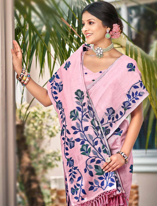 Ethnic Linen Woven Saree Un-Stitched Party Wear For Women