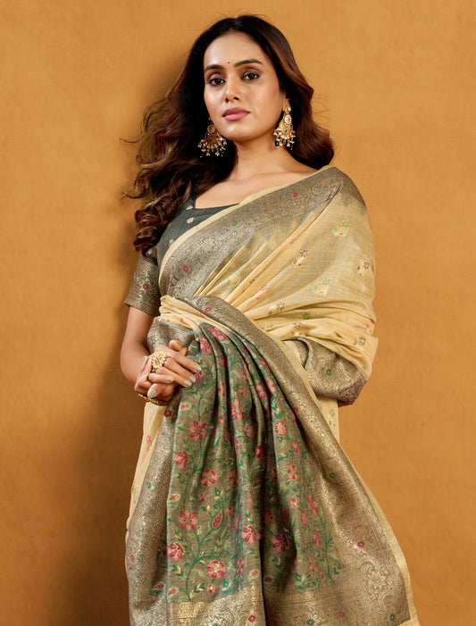 Linen Ethnic Un-Stitched Party Wear Woven Saree For Women