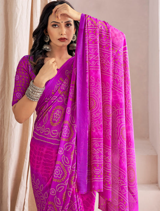 Dark Pink Classic Star Chiffon With Printed Ruchi Sarees