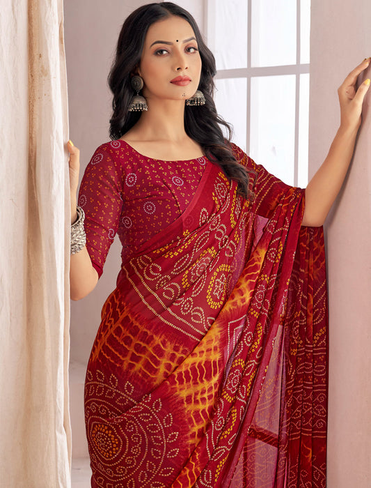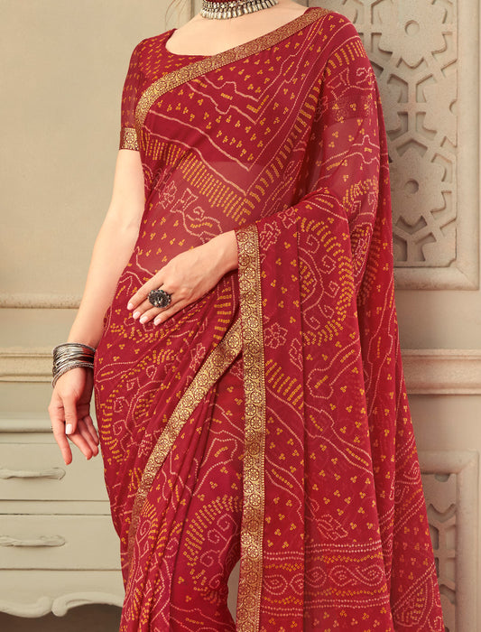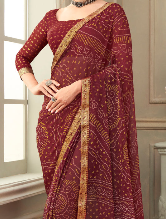 Maroon Classic Star Chiffon With Printed Ruchi Sarees