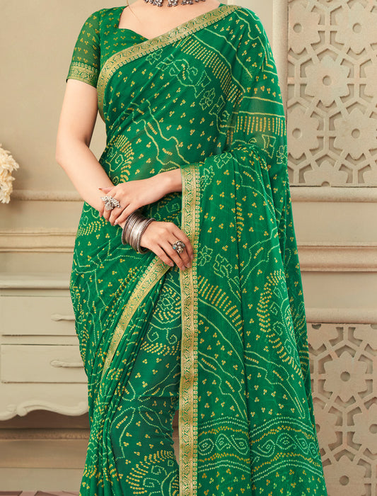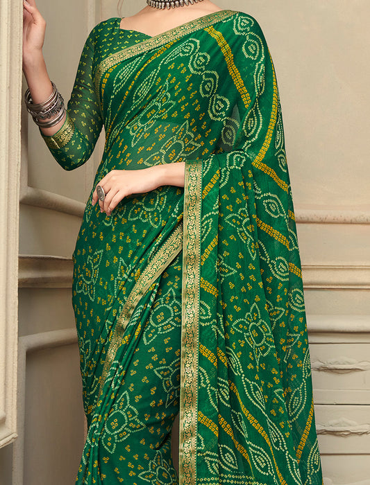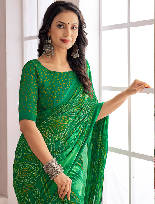 Green Classic Star Chiffon With Printed Ruchi Sarees