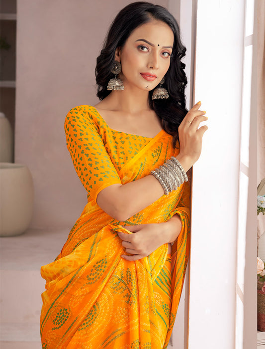Yellow Classic Star Chiffon With Printed Ruchi Sarees