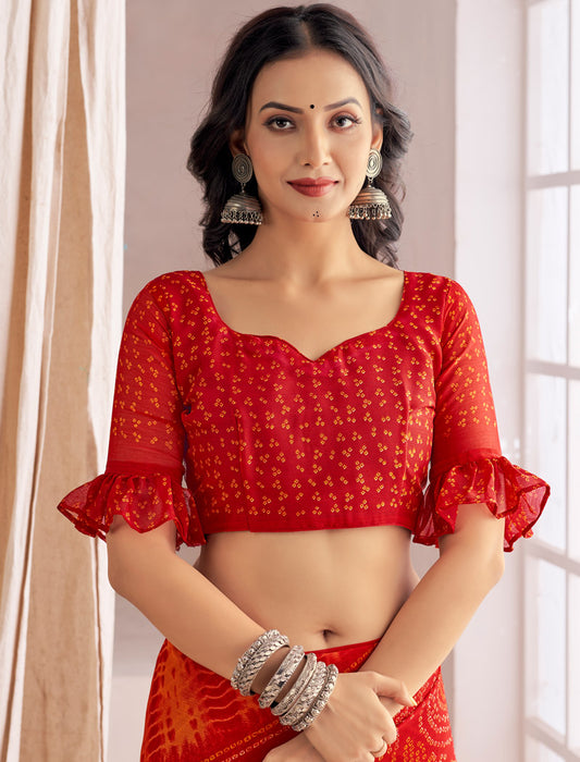 Red Classic Star Chiffon With Full Sleeves Blouse Printed Ruchi Sarees