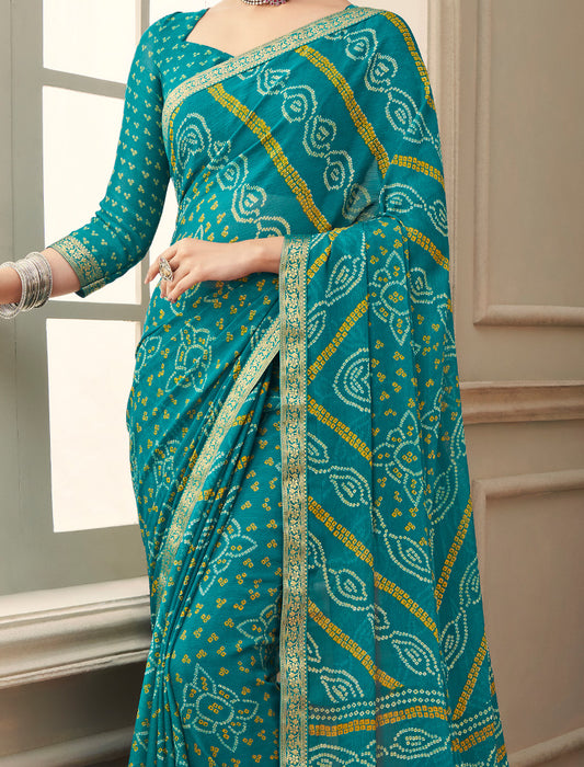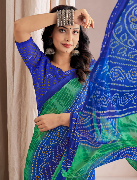 Blue & Green Classic Star Chiffon With Printed Ruchi Sarees