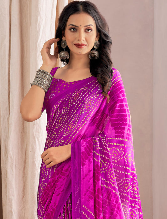 Purple Classic Star Chiffon With Printed Ruchi Sarees