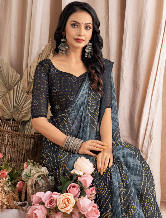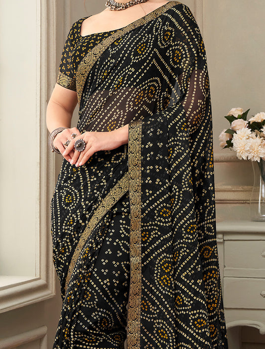Black Classic Star Chiffon With Printed Ruchi Sarees