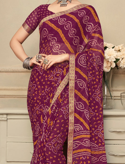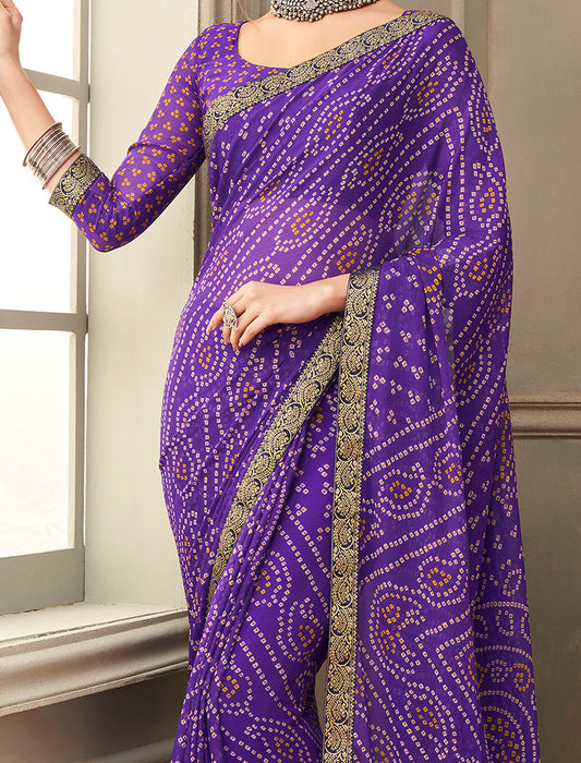 Purple Simayaa Chiffon With Tassels and Banarasi Border Ruchi Printed Sarees