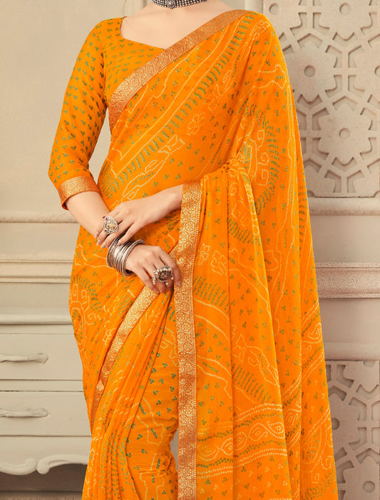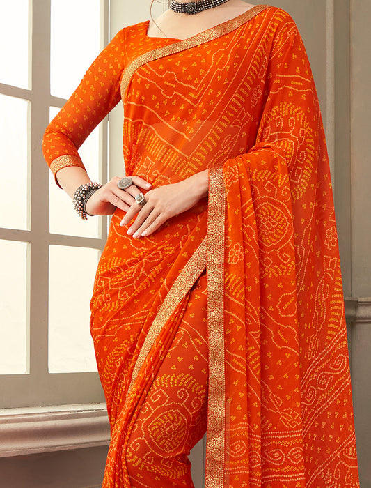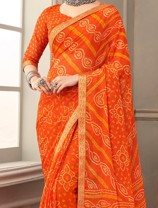 Orange Simayaa Luxurious Chiffon With Tassels and Banarasi Border Ruchi Printed Sarees