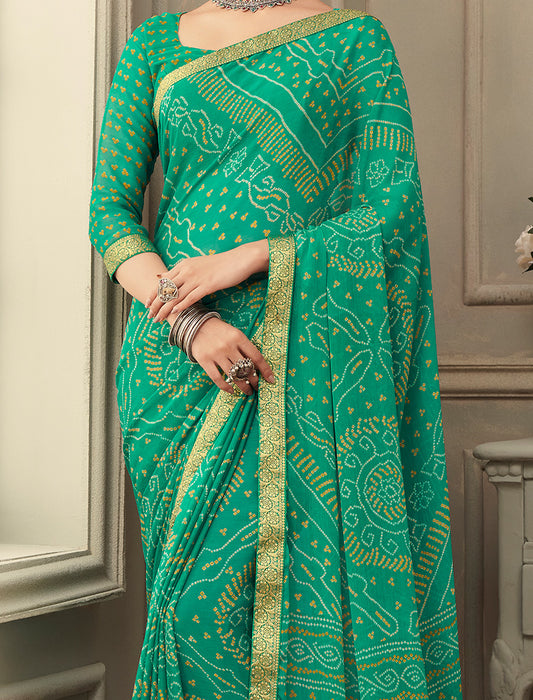 Sea Green Simayaa Chiffon With Tassels and Banarasi Border Ruchi Printed Sarees