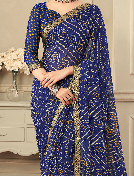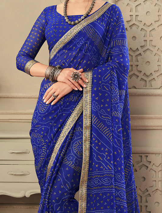 Royal Blue Simayaa Chiffon With Tassels and Banarasi Border Ruchi Printed Sarees