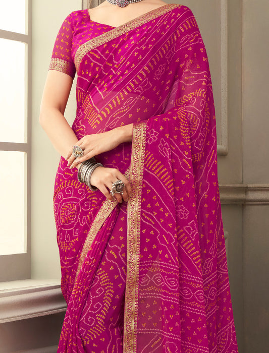 Dark Pink Simayaa Chiffon With Tassels and Banarasi Border Ruchi Printed Sarees