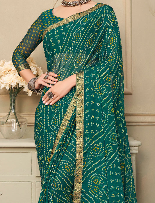 Dark Green Simayaa Chiffon With Tassels and Banarasi Border Ruchi Printed Sarees