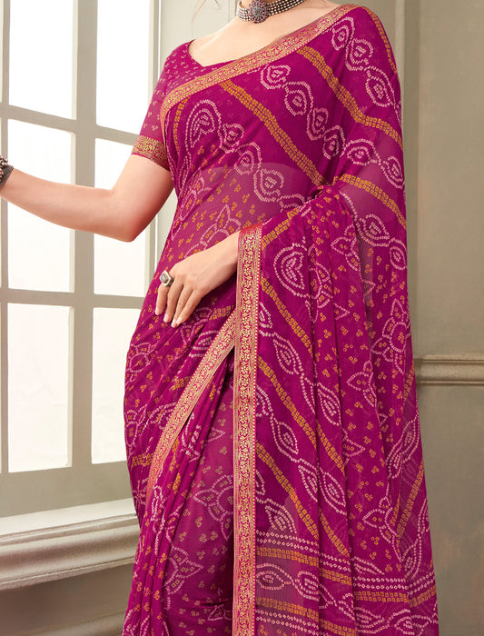 Magenta Simayaa Chiffon With Tassels and Banarasi Border Ruchi Printed Sarees