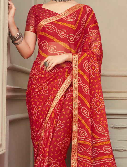 Red Classic Star Chiffon With Printed Ruchi Sarees