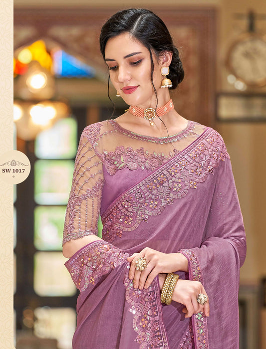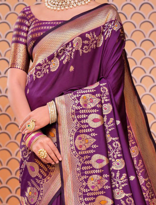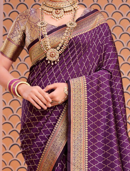 Purple Plitting Work Designer Weadding & Party Silk Saree For Women