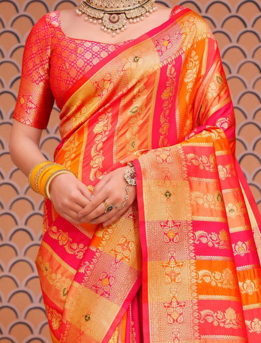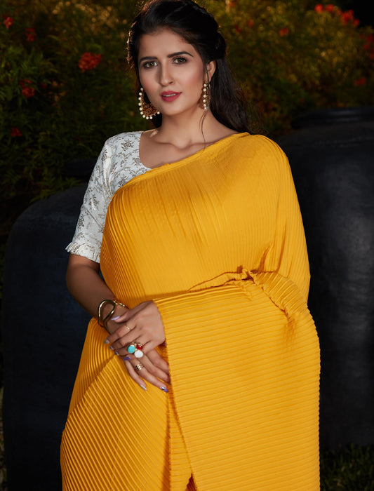Yellow Plitting Work Designer Wedding & Party Silk Saree For Women