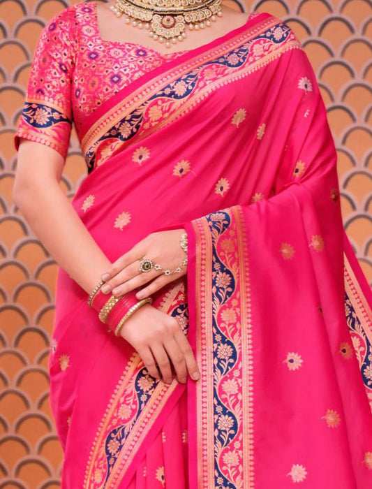 Organic Zari Silk TFH Sandal Wood Party Wear Designer Saree For Women
