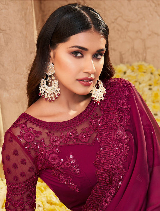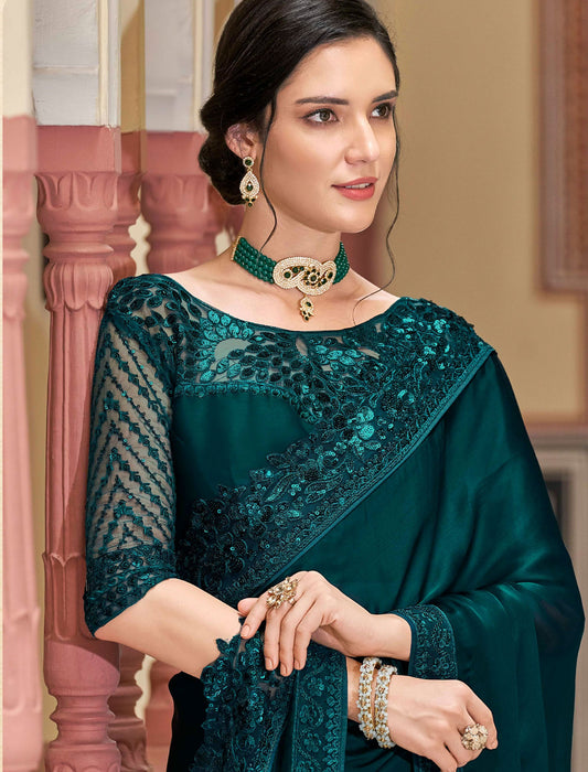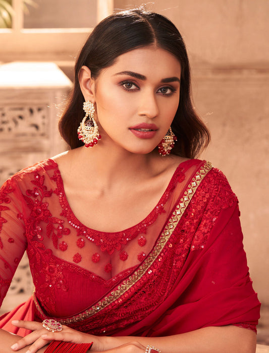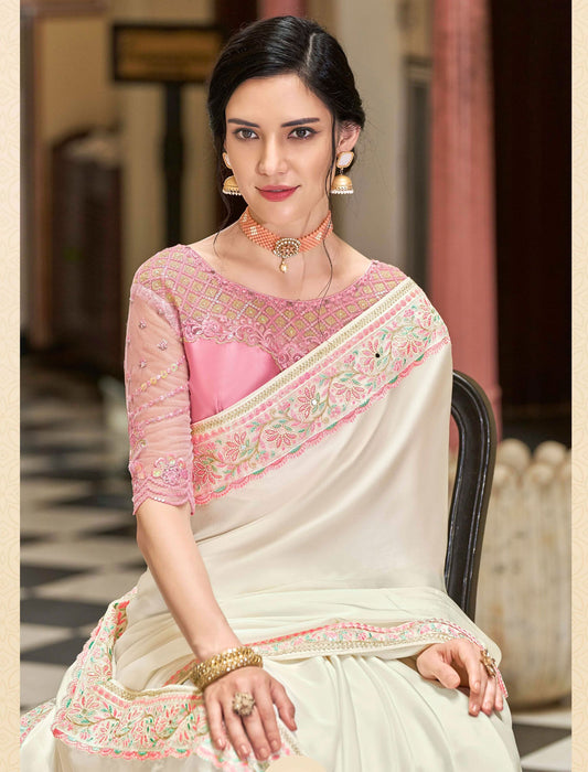 Chinon Saree with Dupion Silk Blouse With Zari & Resham Embroidery Saree For Women
