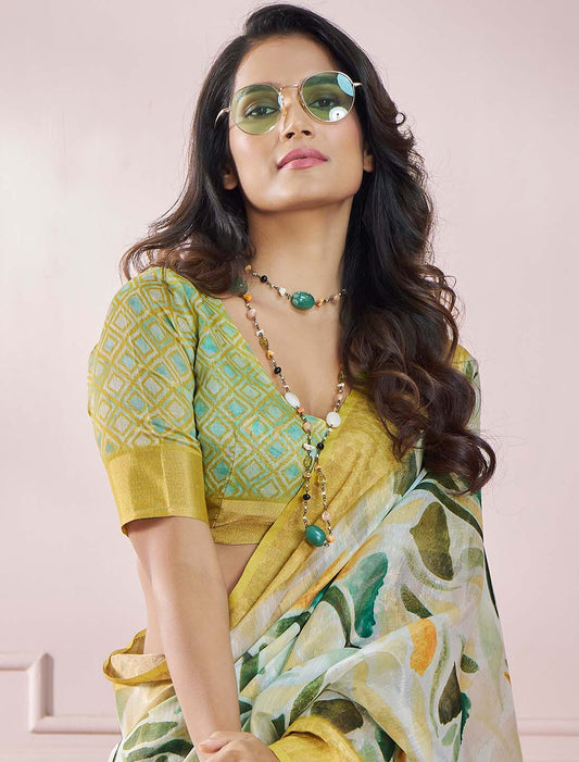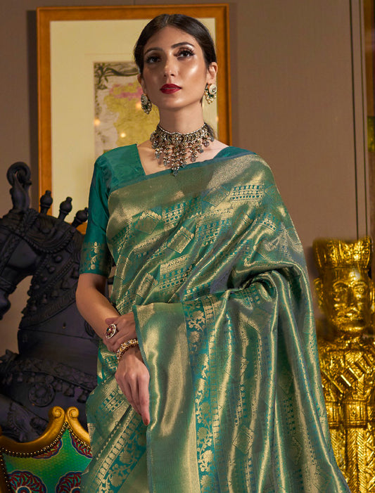 Green Soft Zari Based Modal Silk Ethnic Saree