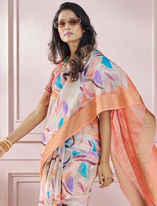 Digital Rainbow With Satin Silk Print Ethnic Saree