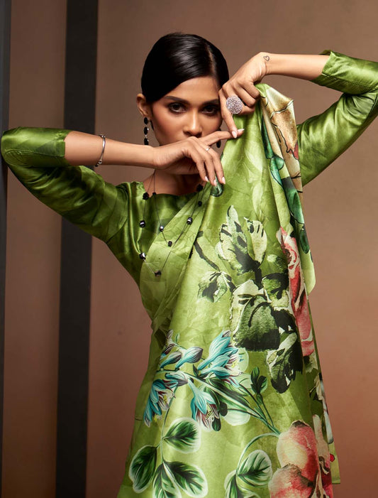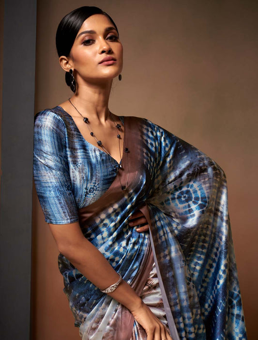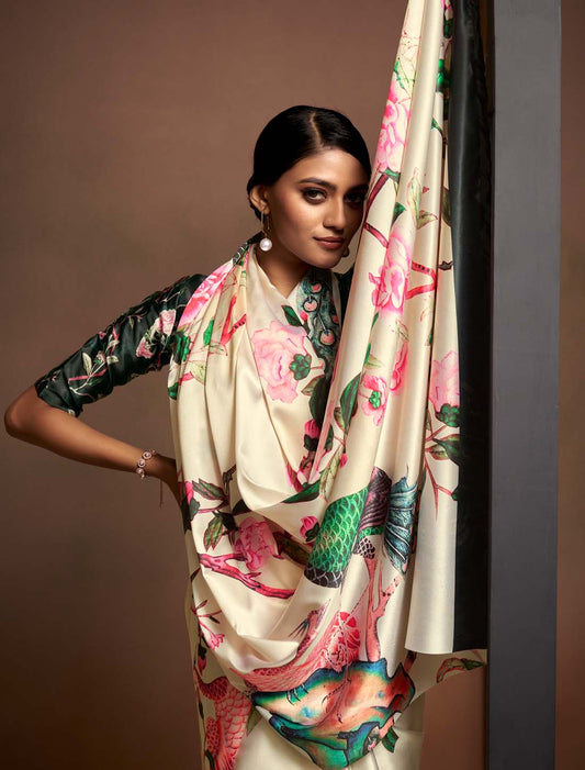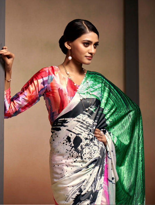 Ethnic Satin With Digital Rainbow Print Silk Saree