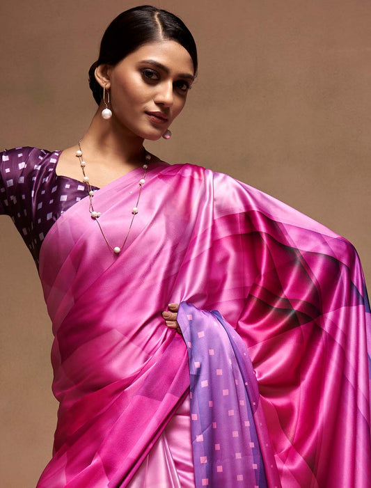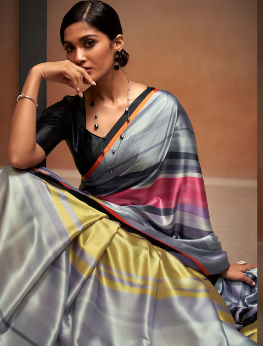 Ethnic Satin Silk With Digital Rainbow Print Saree