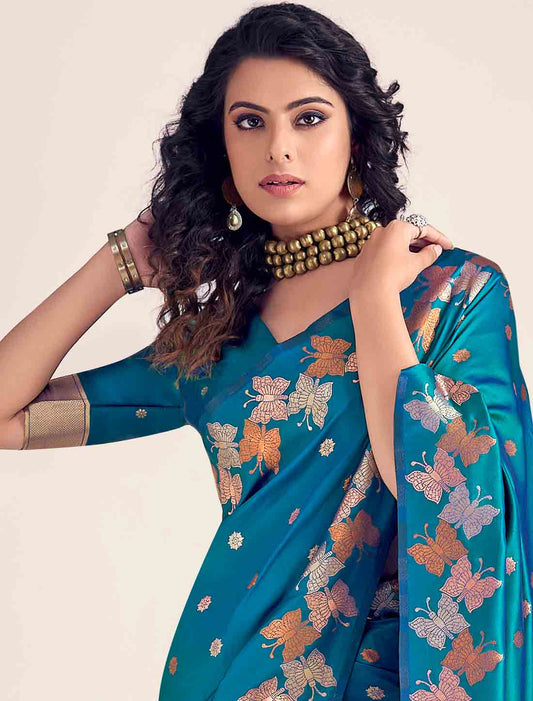 Soft Zari Ethnic Based Modal Silk Blue Saree