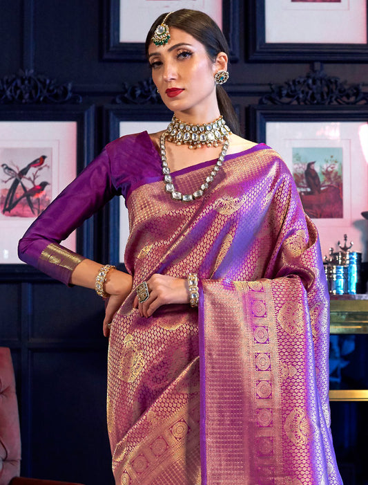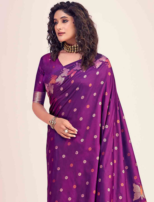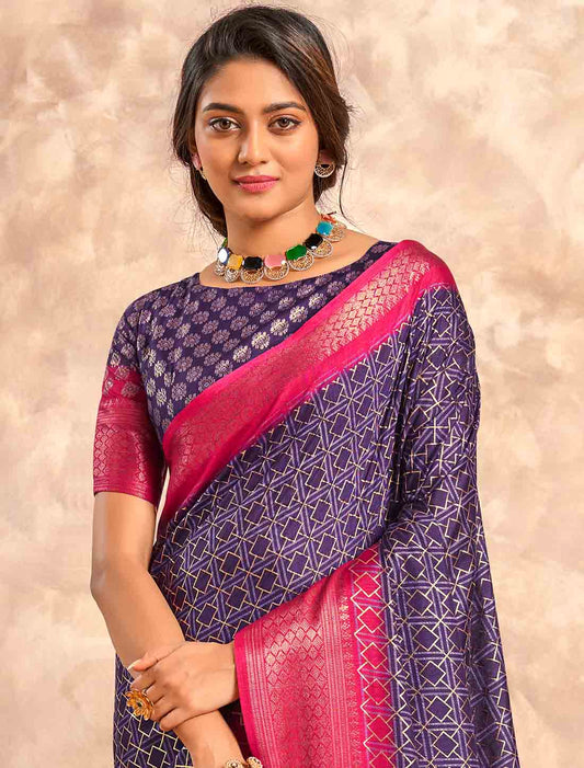 Purple Ethnic Designer Handloom Silk Saree