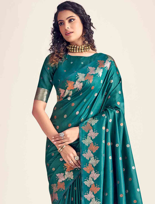 Ethnic Soft Zari Based Modal Silk Green Saree
