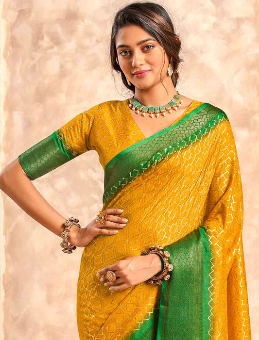 Foil Print Ethnic Soft Dola Silk Party Wear Saree
