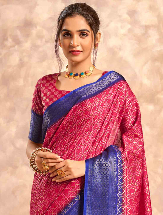 Ethnic Soft Zari Pink Based Modal Silk Saree