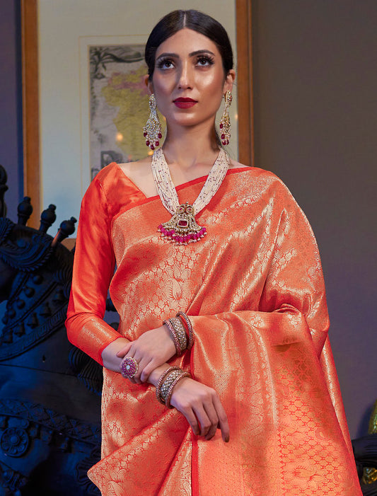 Ethnic Orange Handloom Weaving Designer Silk Saree