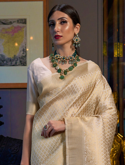 Beige Ethnic Designer Handloom Silk Saree