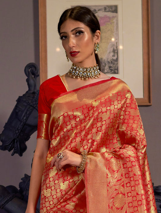 Red Ethnic Designer Handloom Weaving Silk Saree