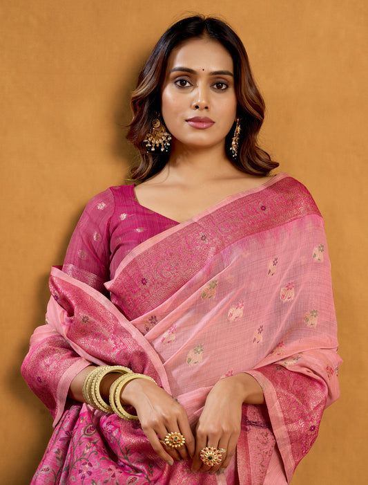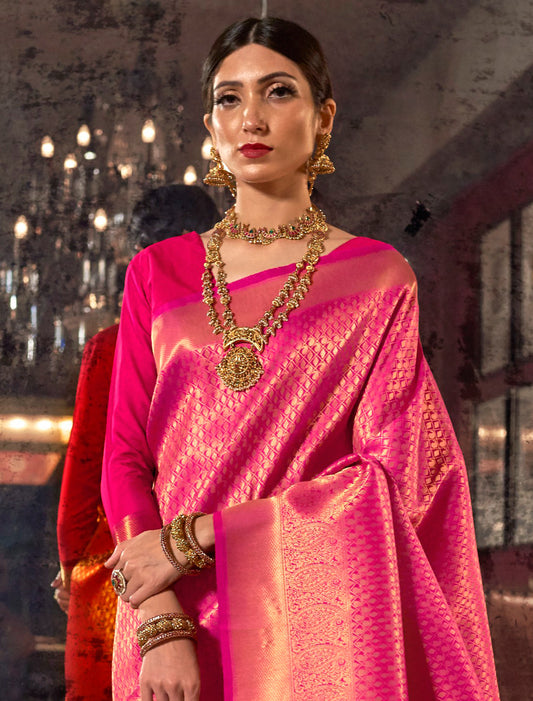 Pink Ethnic Handloom Weaving Designer Silk Saree