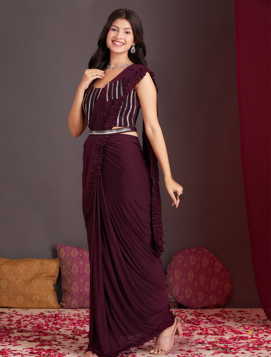 Blackberry Party Wear Desginer Lycra Ready to Wear Saree