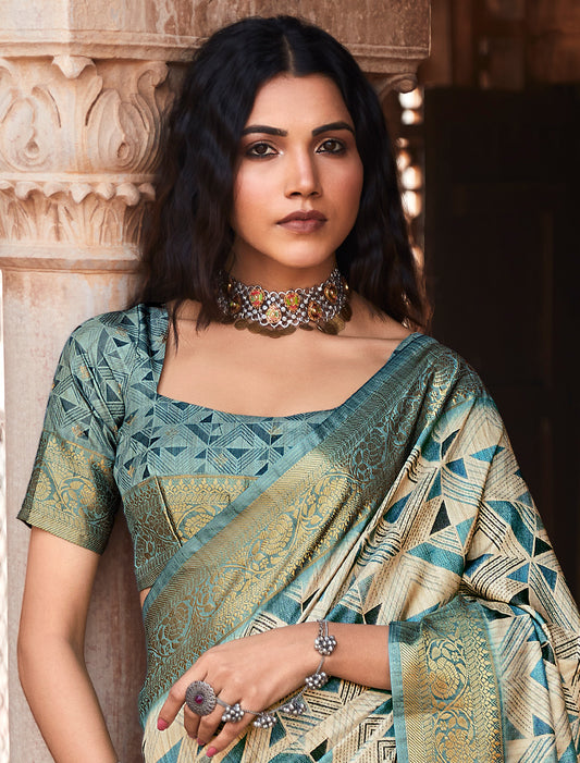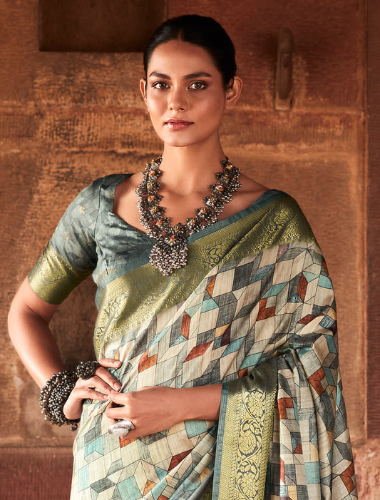 Dusty Green Ethnic Two Tone Silk Party Wear Saree