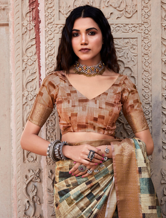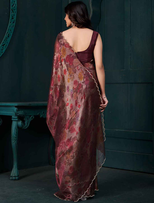Brown Ethnic Two Tone Silk Party Wear Saree
