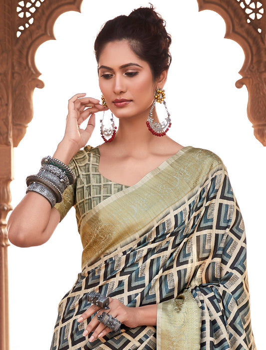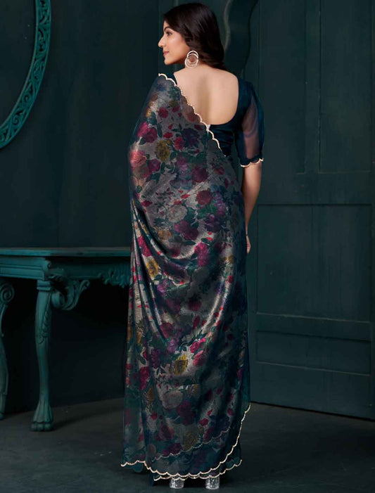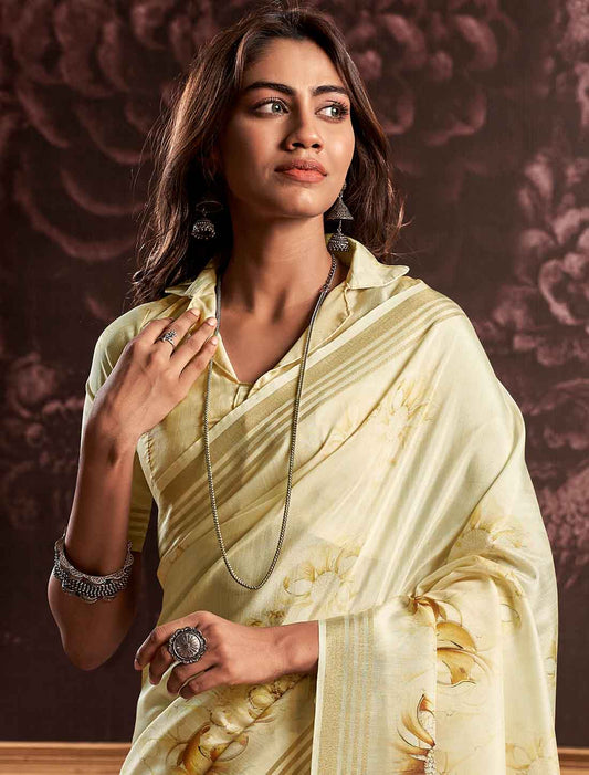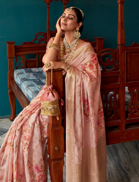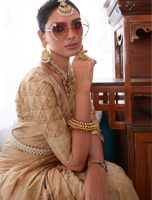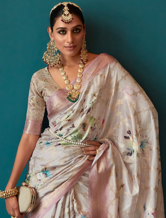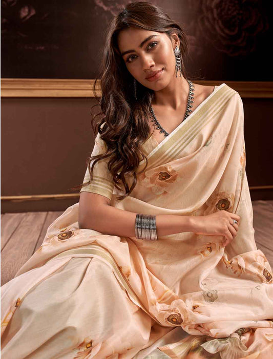 Ethnic Handloom Silk Digital Floral Party wear Saree