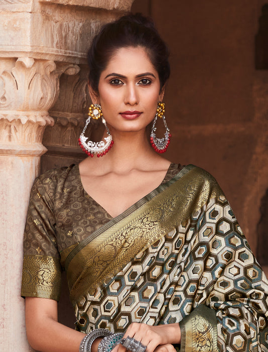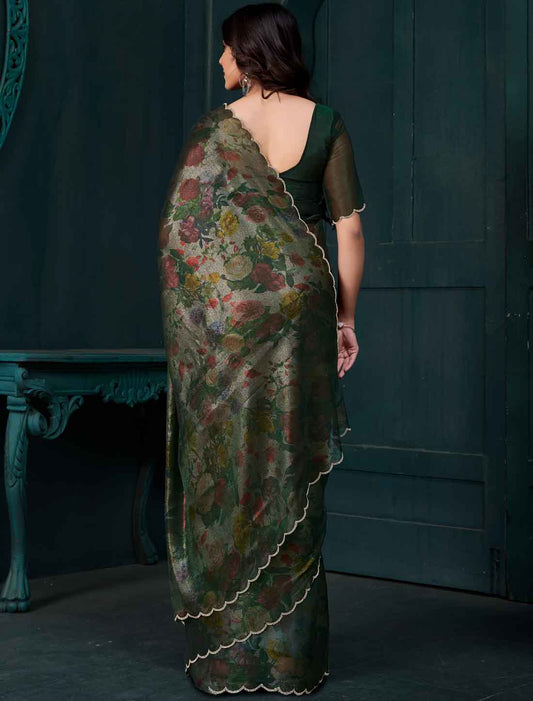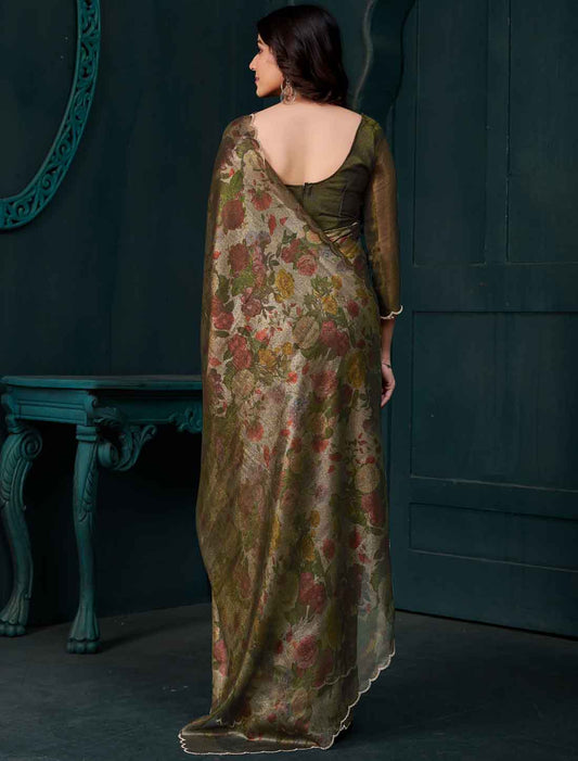 Olive Green Ethnic Two Tone Silk Party Wear Saree