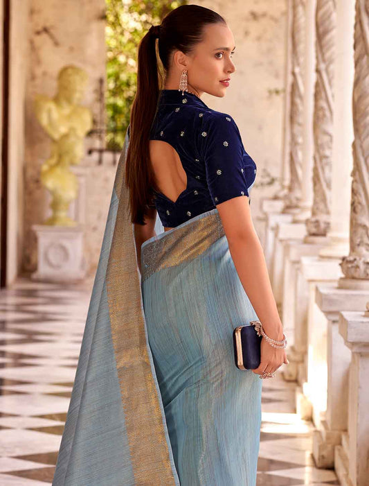 Blue Ethnic Linen Adorned Embroidery Designer Saree