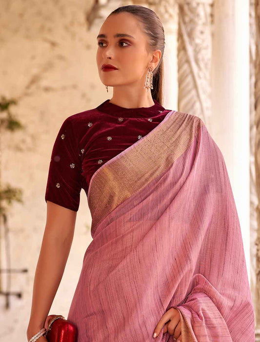 Ethnic Linen Adorned Pink Embroidery Work Designer Saree