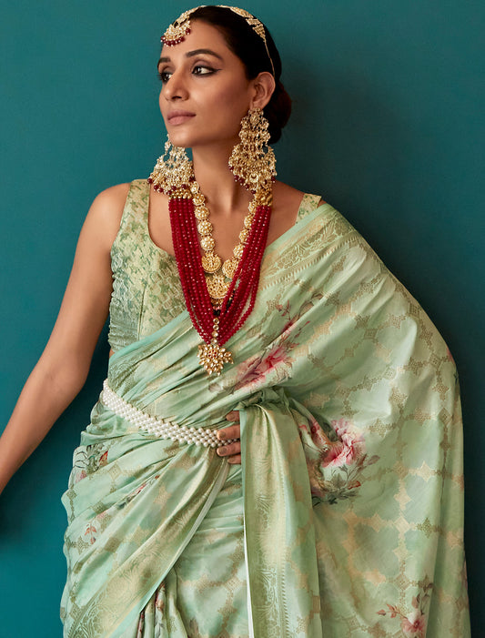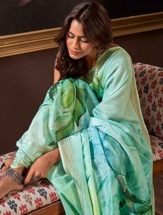 Handloom Silk Digital Floral Party wear Ethnic Saree