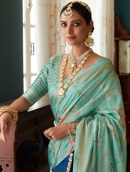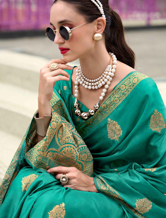Teal Green Ethnic Handloom Silk Party Wear Designer Saree