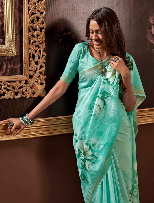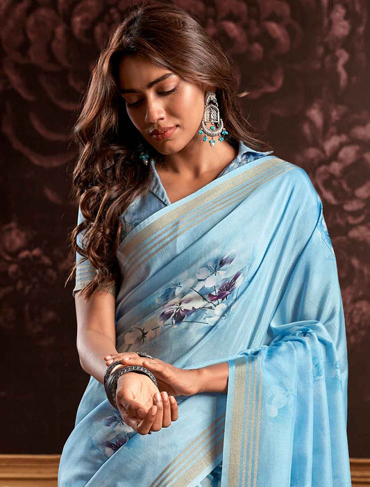 Ethnic Handloom Silk Floral Digital Party wear Saree