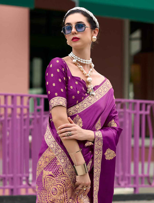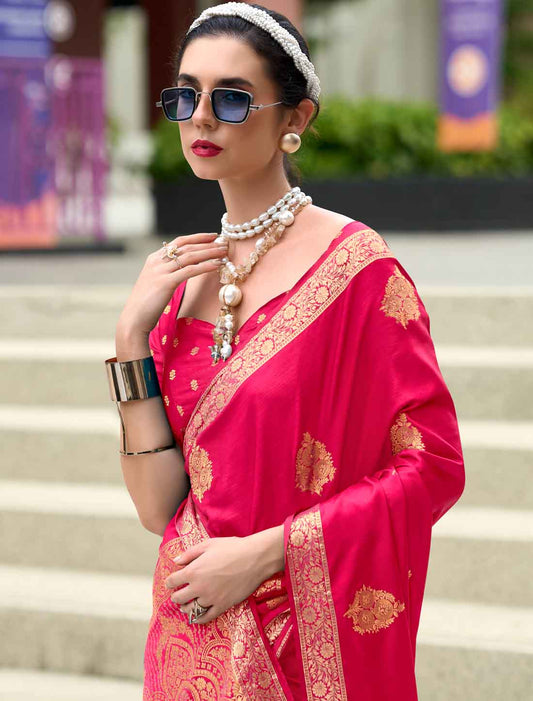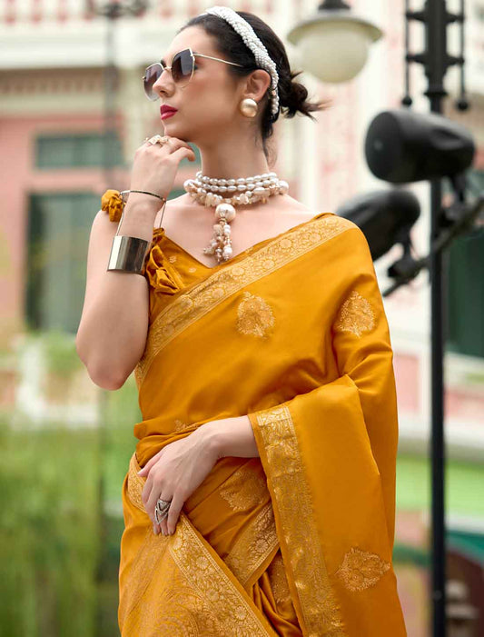 Ethnic Pure Satin Handloom Weaving Party Wear Saree