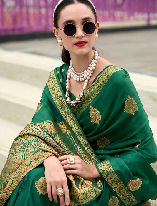 Green Ethnic Handloom Silk Designer Party Wear Saree
