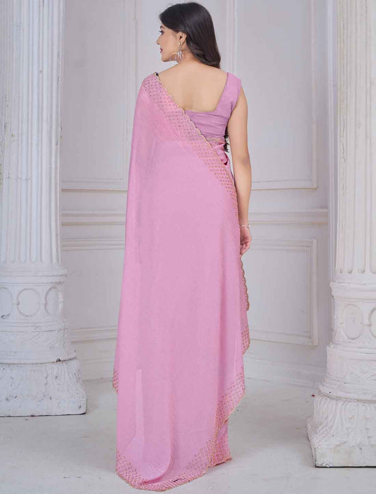 Light Pink Soft Silk Designer Party Wear Ethnic Saree