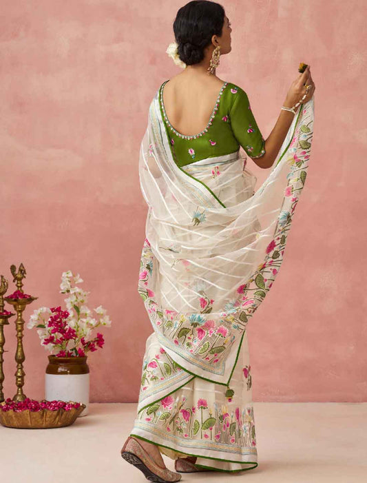 Ethnic Soft Brasso Organza Elevate Printed Saree