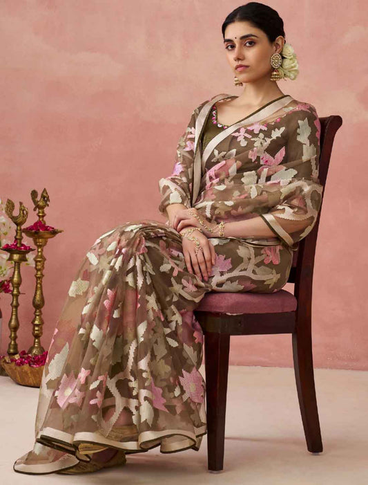 Elevate Your Style Ethnic Soft Brasso Organza Printed Saree